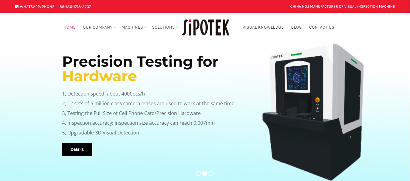 Shenzhen Sipotek Technology Co., Ltd. is a professional automatic visual inspection machine ,automated vision inspection system,industrial machine vision camera,automated optical inspection machine ,optical sorting machine manufacturer from china with low cost and high quality.