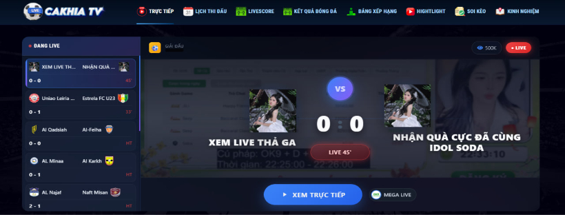 "Cakhia TV là một trang web phát trực tiếp bóng đá miễn phí hàng đầu tại Việt Nam. Với giao diện đẹp mắt, hình ảnh sắc nét, xem mượt, không bị giật lag.