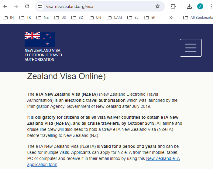 Електронний дозвіл на подорожі до Нової Зеландії або NZETA – це електронний дозвіл на подорож для жителів країн, у яких діє скасований візовий режим. Надісланий NZeTA був викладений у 2019 році, ця віза працює точно як туристична віза. NZeTA або безвізовий режим є обов’язковим для всіх приїжджих відвідувачів, які в’їжджають до Нової Зеландії: мешканці кожної з 60 країн, де візовий режим скасовано, можуть подорожувати за допомогою авіатуру. Проїжджим транспортом можуть зупинятися жителі 191 країни. Електронне управління подорожей Нової Зеландії настільки просте, що ви можете завершити його в Інтернеті та отримати електронну візу електронною поштою протягом кількох годин або кількох днів. NZETA дозволяє резидентам, які відповідають вимогам, перетинати кордон Нової Зеландії з метою туристичної індустрії, бізнесу або подорожей, не проходячи через проблему перебування в черзі до посольства чи консульства. Очікується, що для отримання електронного дозволу на подорожі Новою Зеландією (NZ ETA) жодні поштові або кур’єрські служби до будь-якого адміністративного офісу не будуть. Відтепер це є обов’язковою умовою для безвізового режиму для громадян, а також екіпажів авіакомпаній чи круїзів, за всіх рівних умов. Дійсно, навіть постійні жителі Австралії вимагають електронного дозволу на поїздку Нової Зеландії - NZ ETA. Жителі, які відповідають вимогам, можуть подати заявку через веб-додаток New Zealand Electronic Travel Authority для туристичної індустрії, ділового візиту або поїздки до іншої країни з аеропорту Окленда. Кандидати повинні заповнити форму заявки до Управління електронних подорожей Нової Зеландії, вказавши особисті та ідентифікаційні дані. Віза Нової Зеландії вимагає, щоб у паспорті була чиста сторінка, щоб працівники міграційної служби могли поставити на ній штамп у терміналі. Мешканці, які їх супроводжують, мають право подати заявку на отримання візи до Нової Зеландії через Інтернет або NZeTA. Люксембург, Франція, Кіпр, Іспанія, Португалія, Ірландія, Польща, Швеція, Угорщина, Австрія, Болгарія, Данія, Мальта, Словенія, Словаччина, Латвія, Нідерланди, Чехія, Німеччина, Греція, Естонія, Румунія, Італія, Бельгія, Хорватія, Резиденти Великої Британії, Фінляндії та Литви мають право на отримання Visa Online для Нової Зеландії. The Electronic Travel Authorisation for New Zealand or NZETA is an electronic travel authorisation for residents of visa waiver nations. The NZeTA sent was laid out in the year 2019, this Visa works precisely like a tourist visa. The NZeTA or visa waiver is obligatory for the all inbound visitors entering New Zealand: residents of every one of the 60 visa waiver nations can travel via Plane tourt. Residents of 191 nations can stop by journey transport. Electronic Travel Authority New Zealand is easy to such an extent that you can finish it altogether on the web, and get eVisa by email within few hours or a couple of days. NZETA permits the Eligible residents to cross the border of New Zealand for the travel industry, business, or travel purposes without going through the issue of remaining in the queue for embassy or consulate. No postage or courier to any administration office is expected to acquire New Zealand Electronic Travel Authorisation - NZ ETA. It is as of now a compulsory prerequisite for visa waiver public, as well as crew of airlines or cruise, everything being equal. Indeed, even the permanent residents of Australia are required the NZ Electronic Travel Authorisation - NZ ETA. Eligible residents can apply through the direct New Zealand Electronic Travel Authority application on the web for the travel industry, business visit or travel to one more country from Auckland Airport. Candidates are supposed to fill in the New Zealand Electronic Travel Authority application form with individual and ID details. New Zealand Visa requires that passport has clear page with the goal that migration staff can stamp it on the air terminal. The accompanying residents are Eligible to apply for New Zealand Visa On the web or NZeTA. Luxembourg, France, Cyprus, Spain, Portugal, Ireland, Poland, Sweden, Hungary, Austria, Bulgaria, Denmark, Malta, Slovenia, Slovakia, Latvia, Netherlands, Czech, Germany, Gre