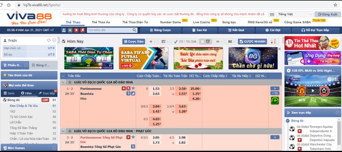 VIVA88 là một trang web cá cược thể thao và bóng đá trực tuyến, được biết đến với những ưu điểm nổi bật như an toàn, tiện lợi, minh bạch và tốc độ giao dịch nhanh chóng, mang đến trải nghiệm đáng tin cậy và thuận tiện cho người chơi.