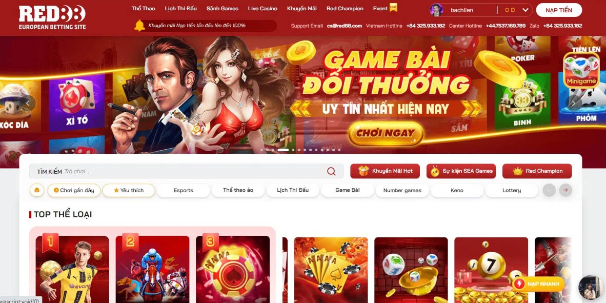 Red88 - Trang chủ Red88 Uy Tín Mới Nhất. Sân chơi bảo mật, an toàn và minh bạch. Nhiều chương trình ưu đãi đặc sắc. Kho Game Casino đa dạng, như : Tiến lên, Bóng Đá, Slot Bài, Keno, Thể thao ảo, Baccarat...